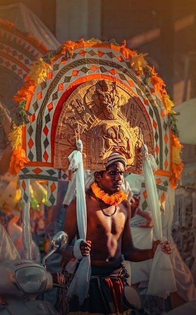 Lalitha Sahasranamam is deeply intertwined with Hindu festivals, particularly Navaratri, where devotees recite it to honor Goddess Lalita. During Pournami (full moon) and Fridays, special pujas are conducted, incorporating this sacred hymn. Temples often organize recitation sessions, fostering communal devotion. The availability of Lalitha Sahasranamam in Tamil PDF has made it accessible for devotees to recite during these celebrations. Cultural events, including traditional music and dance performances, often feature this hymn, enhancing its spiritual and cultural significance. These festivals and celebrations highlight the enduring reverence for Lalitha Sahasranamam in Hindu tradition, bridging spirituality and community.