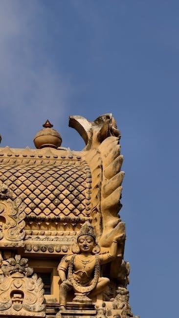 Lalitha Sahasranamam holds a prominent place in temple worship, particularly in shrines dedicated to Goddess Lalita. It is often recited during daily pujas and special rituals, serving as a powerful medium to connect devotees with the divine. Temples incorporate this hymn in elaborate ceremonies, such as Navaratri celebrations, where its recitation is believed to invoke the goddess’s blessings. The availability of Lalitha Sahasranamam in Tamil PDF has further facilitated its use in temple rituals, enabling priests and devotees to chant it with precision. This sacred text is integral to maintaining the spiritual ambiance in temples, fostering devotion and spiritual growth among worshippers. Its inclusion in temple practices underscores its enduring significance in Hindu religious traditions.